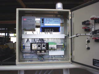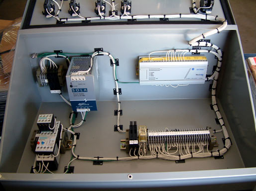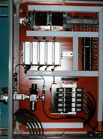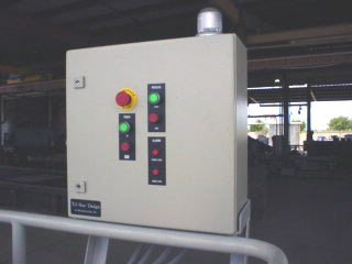 Control system used to operate a large bandsaw. The saw is used to remove the warheads from test missiles and small rockets. The main enclosure is mounted on the saw and controls the speed and direction of motion. It also had to fulfill very tight space restrictions. The remote panel is contained in a blockhouse almost 100 feet away from the saw.