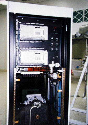 This satellite test station vacuum system was custom made for a major aerospace company in conjunction with Prime Technology of Santa Barbara, CA. The system is shown here in a temporary test fixture. Custom Connections was responsible for the controls portion of the project.