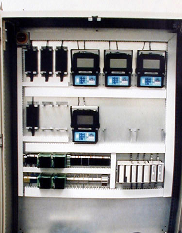 This is an Ultra-pure water facility flow meter panel used to display water flow from various points within a water system and then relay those measurements to a master control system.